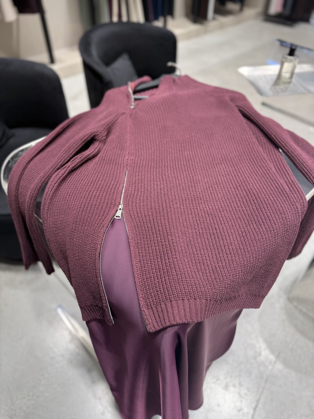 Fermuar detaylı kazak Bordo